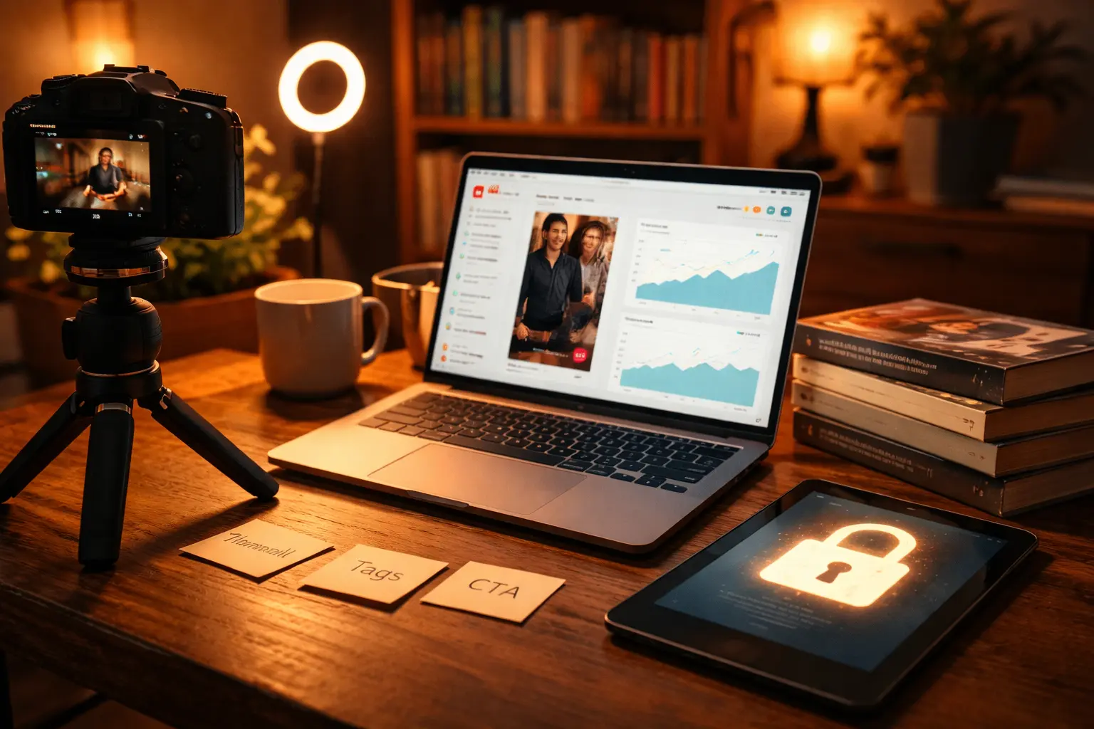 Success comes from clear metadata, eye-catching thumbnails, concise calls to action, and cross-promotion of DRM-protected eBook links, turning video views into secure sales.